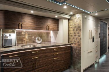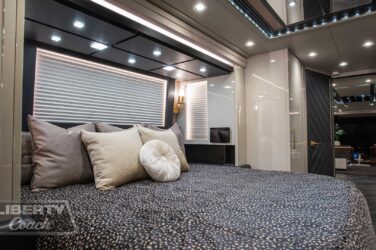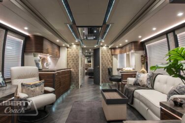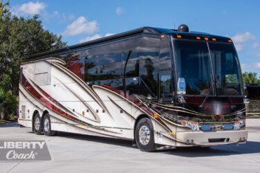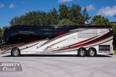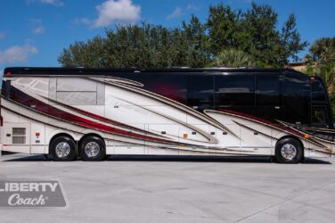 Elegant Lady #5465 is built on a Prevost H3-45 platform and boasts the most advanced features and equipment available, as well as our signature one-of-a-kind interior and exterior designs.